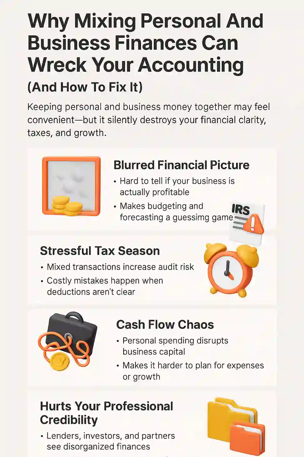 By understanding why mixed finances cause problems—and how to fix them—small businesses can protect themselves from unnecessary costs, complications, and compliance risks.